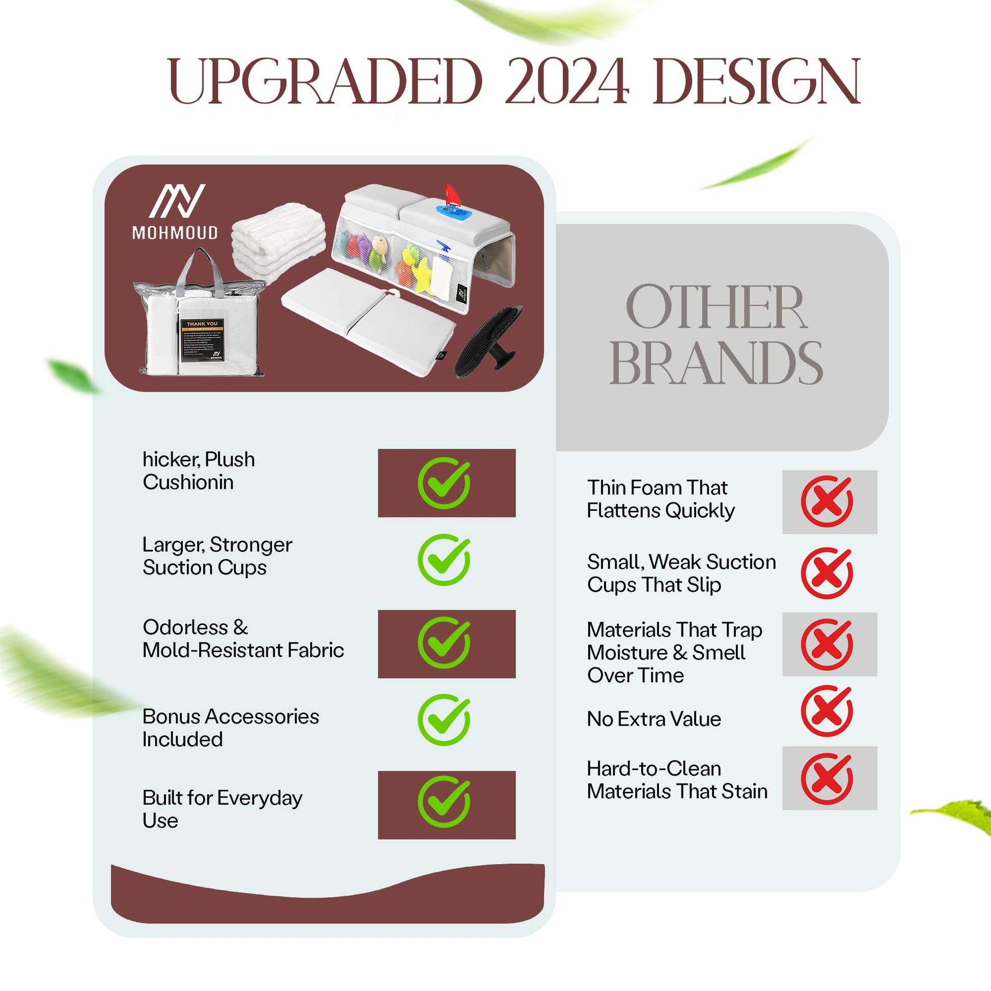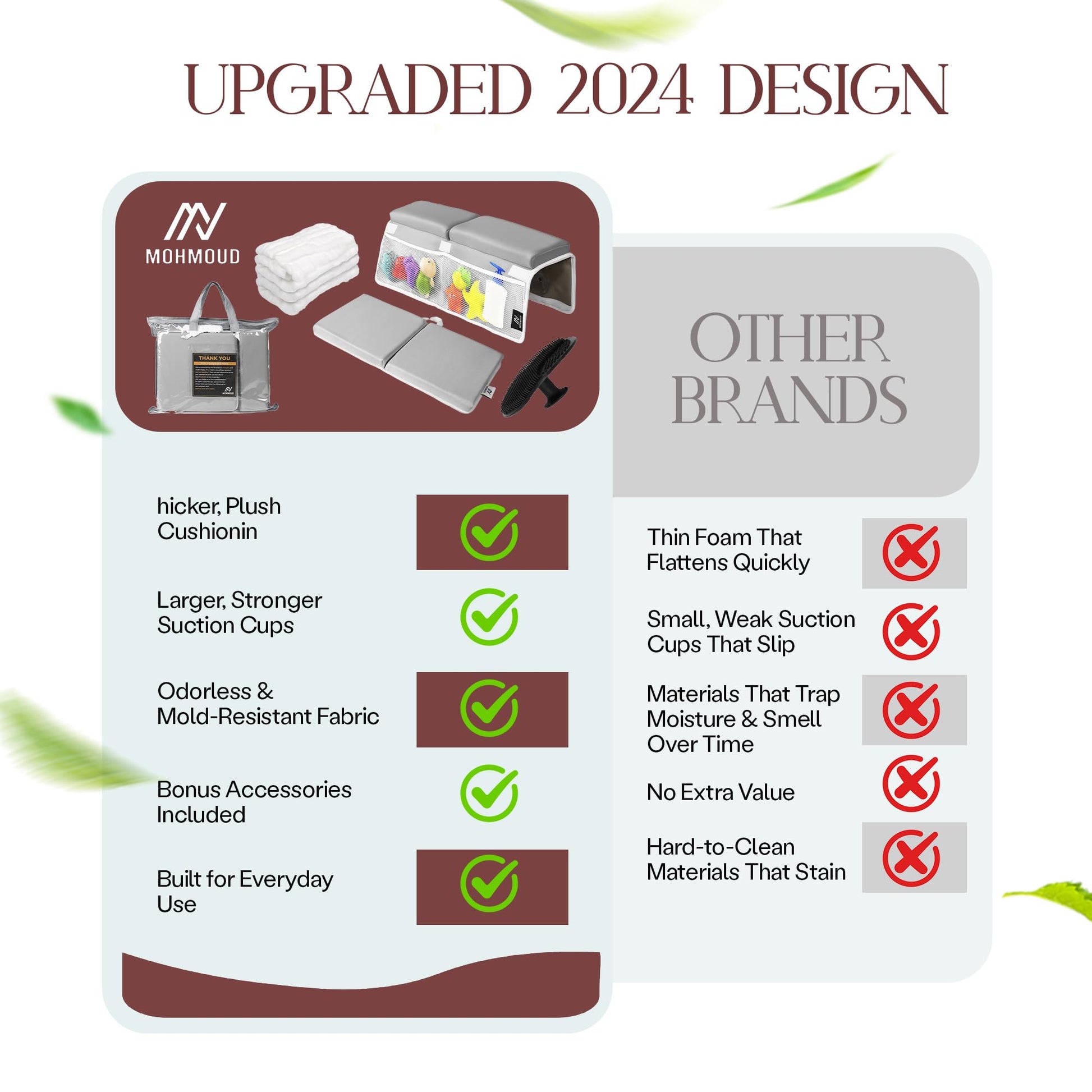 - Stay Put Stability: Large, durable suction cups and a non-slip rubber grip ensure the bath kneeling pad and elbow rest stay securely in place on any surface, giving you peace of mind during bath time