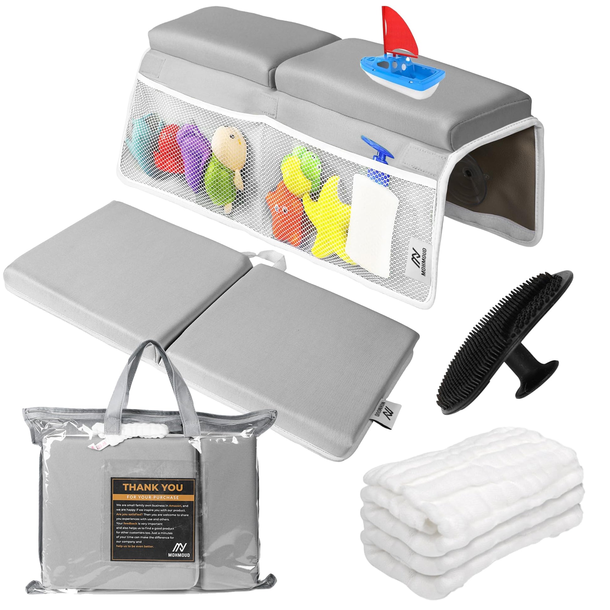 Mohmoud Baby Bath Kneeler and Elbow Rest Pad Set | Extra Thick Padding, Non-Slip, Machine Washable, Odorless - Includes Baby Bath Accessories in a Gift Ready Tote Bag - Baby & Toddler Bath Essentials